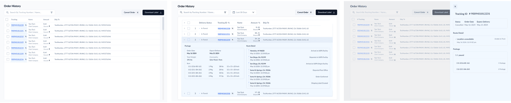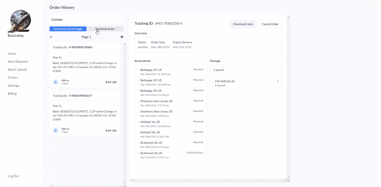 Search Order > Select Card > View Route/ Download label / Cancel at Once