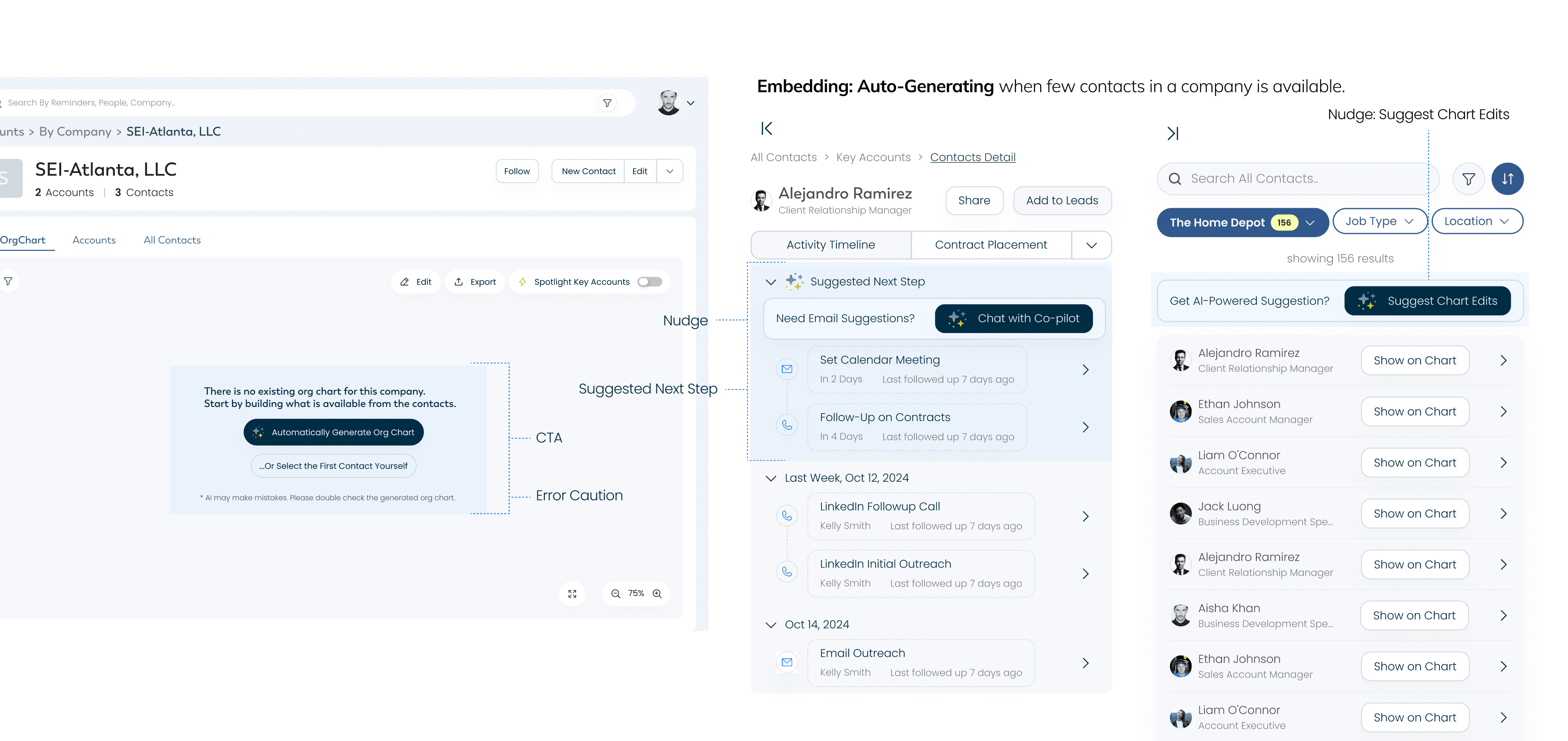 AI Embedding: Automates org chart creation from contacts and emails