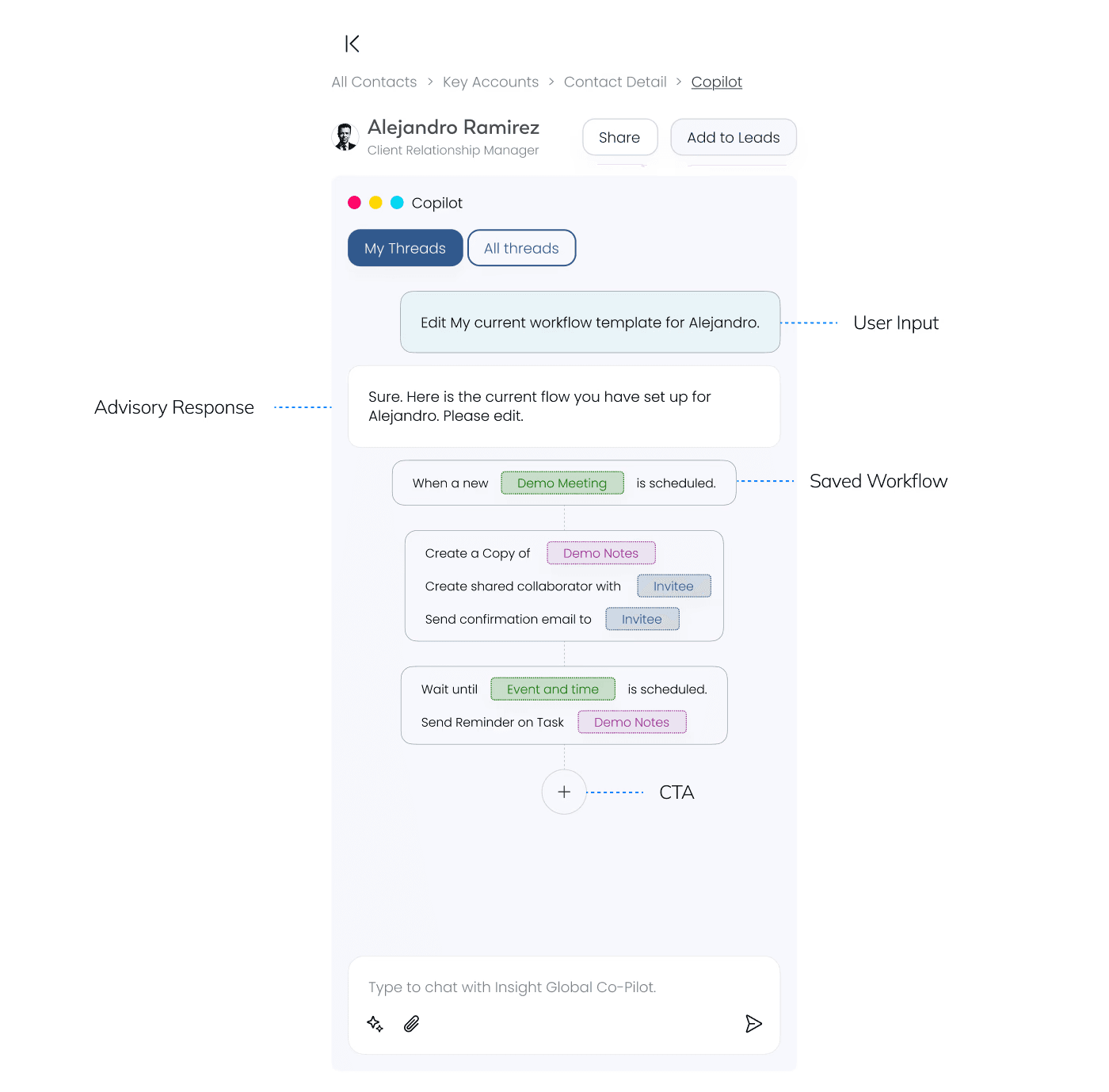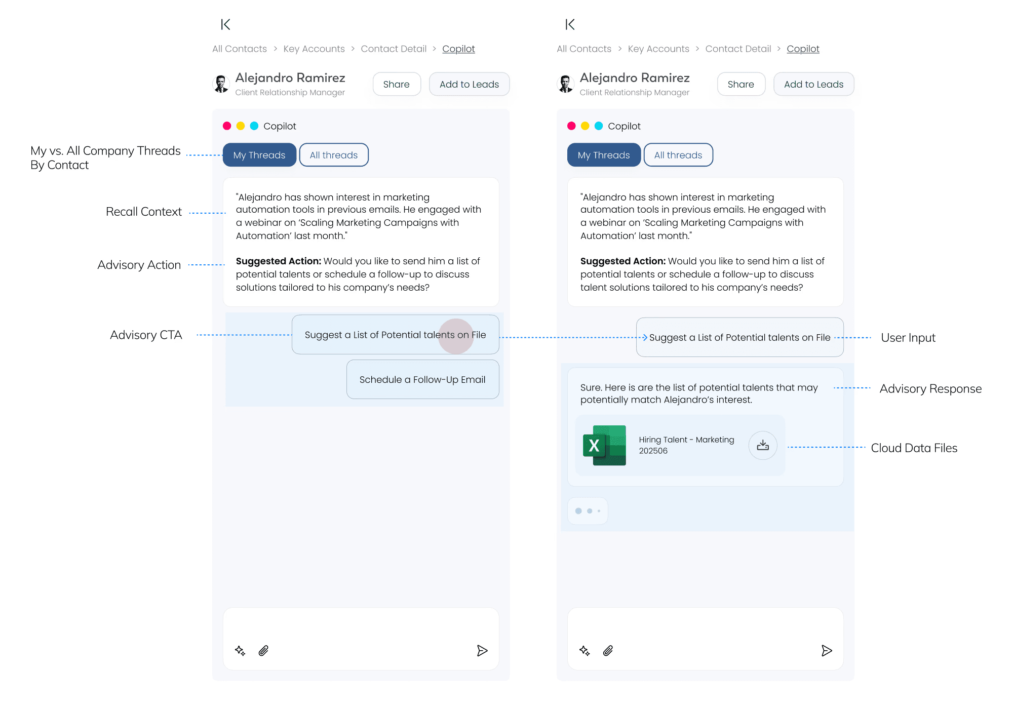 Since our stakeholders have limited AI familiarity, my goal through these designs is to demonstrate the concrete value through practical examples, so that they could easily visualize within our product context.