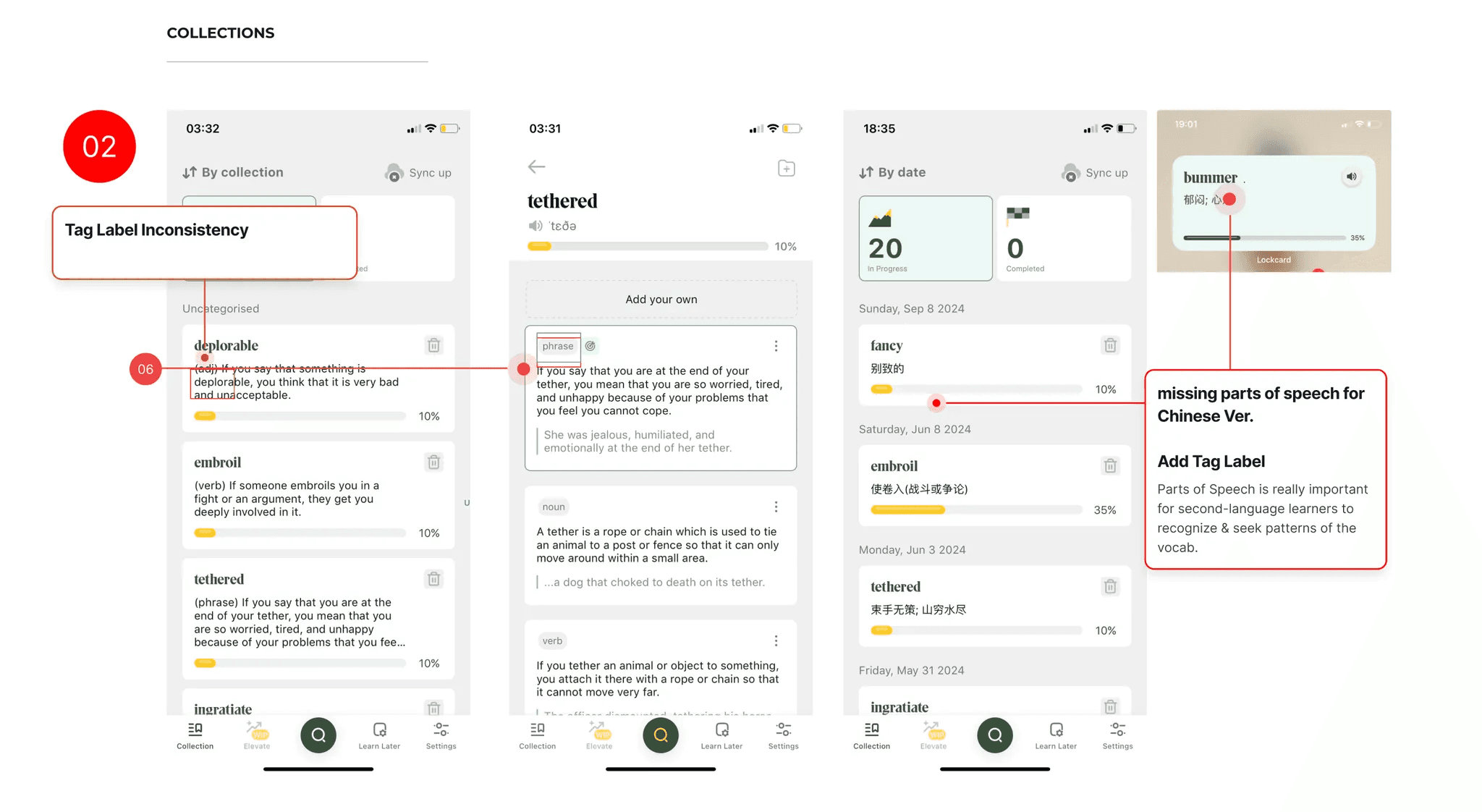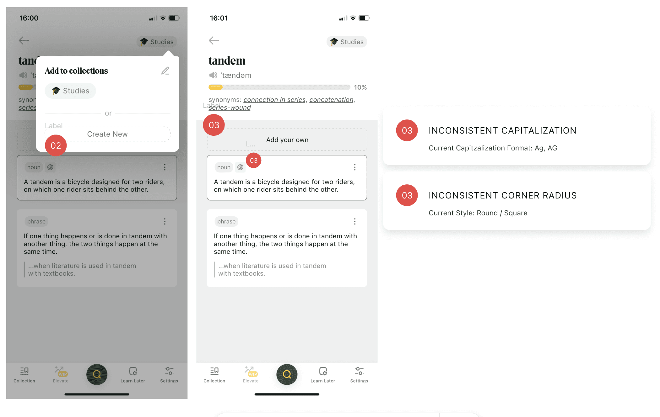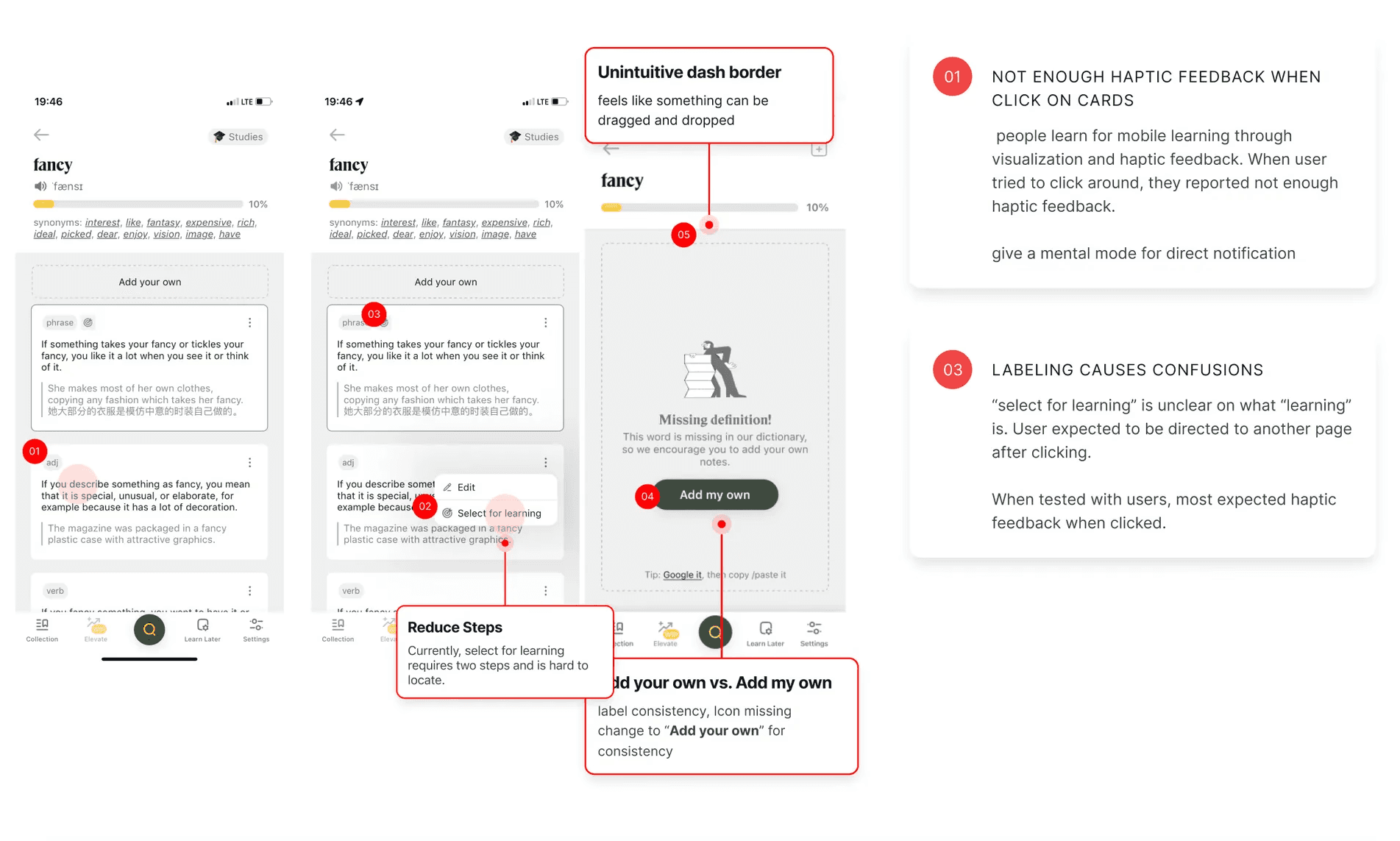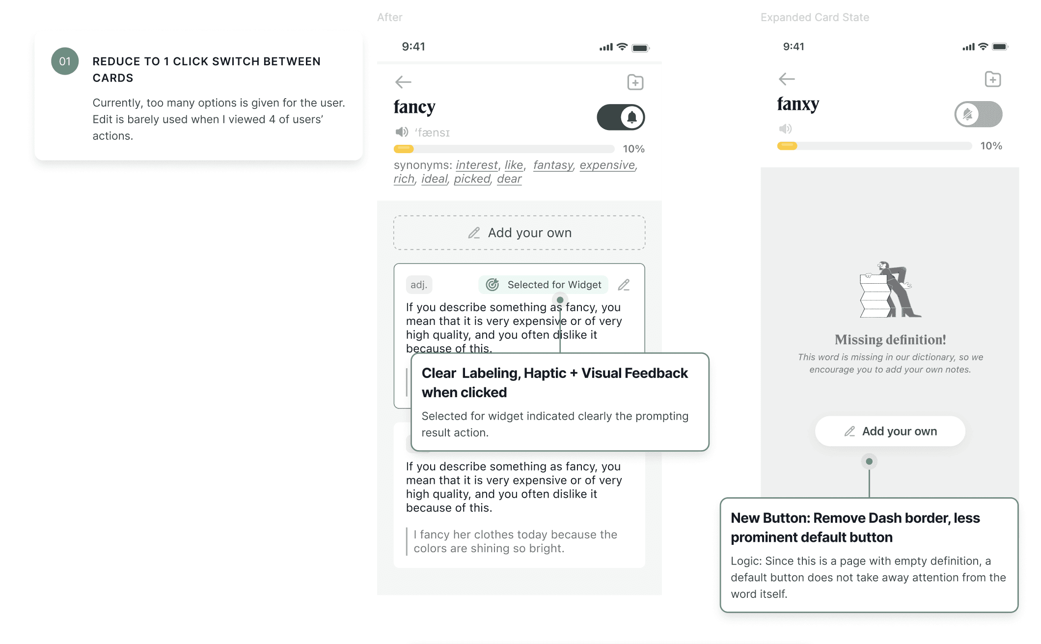 The most important function of the Lockcard App is to search for a word, being able to edit the definition and select widgets for learning. However, after testing with 4 first-time users, consistent frustrations were noted.of