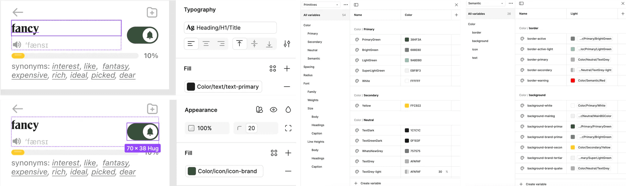 I also learned to use variables from 0-1 for color tokens, typography, spacing, and shadows/elevations. These are particularly valuable for future dark mode implementations.