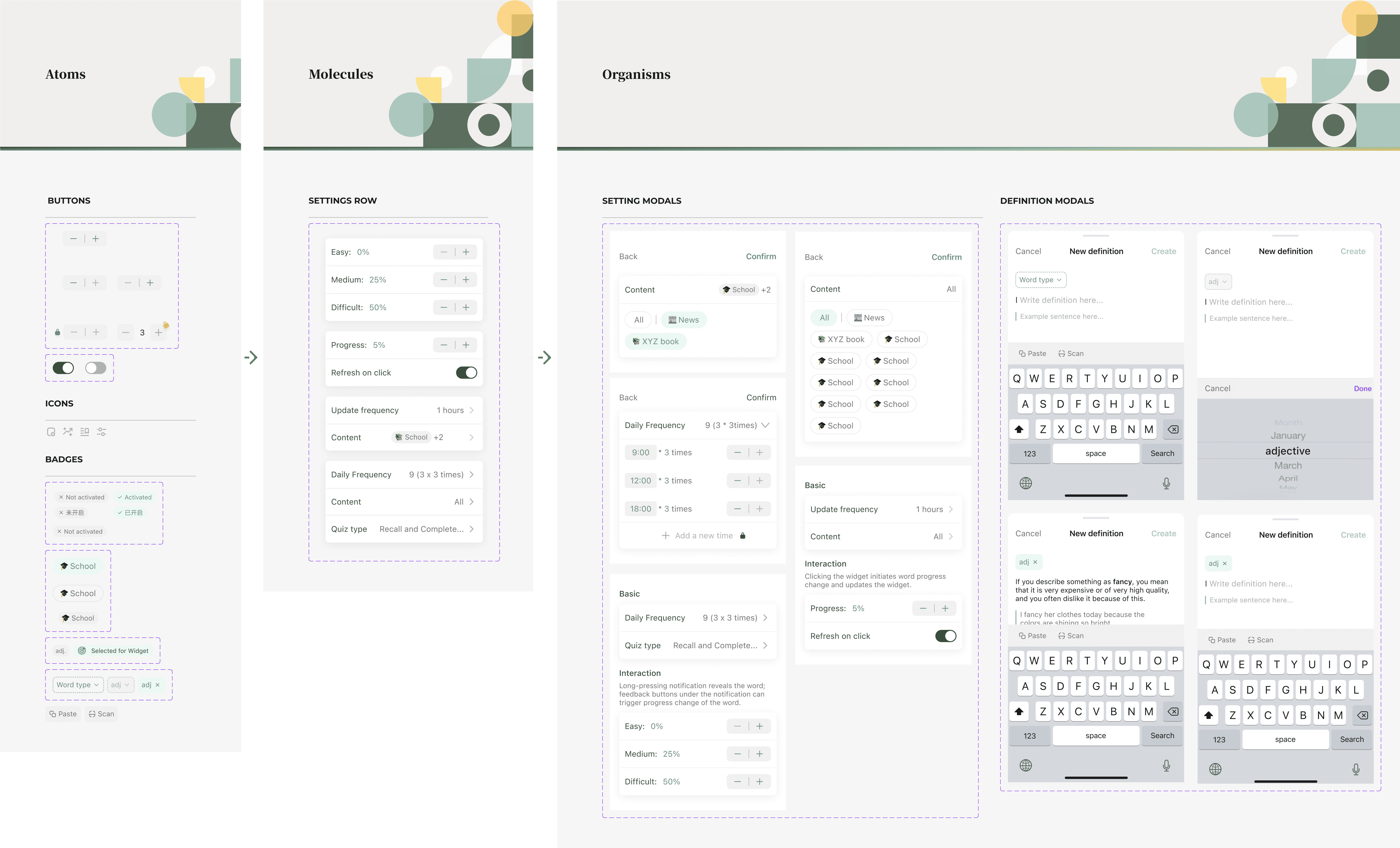 Based on Lockcard’s context use for different tabs and IOS-embedded widgets, I categorized components based on tabs for easily scannable layouts.