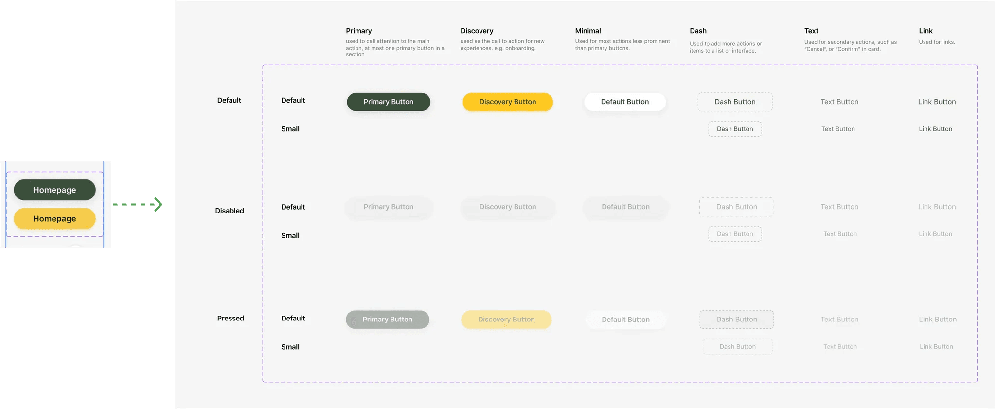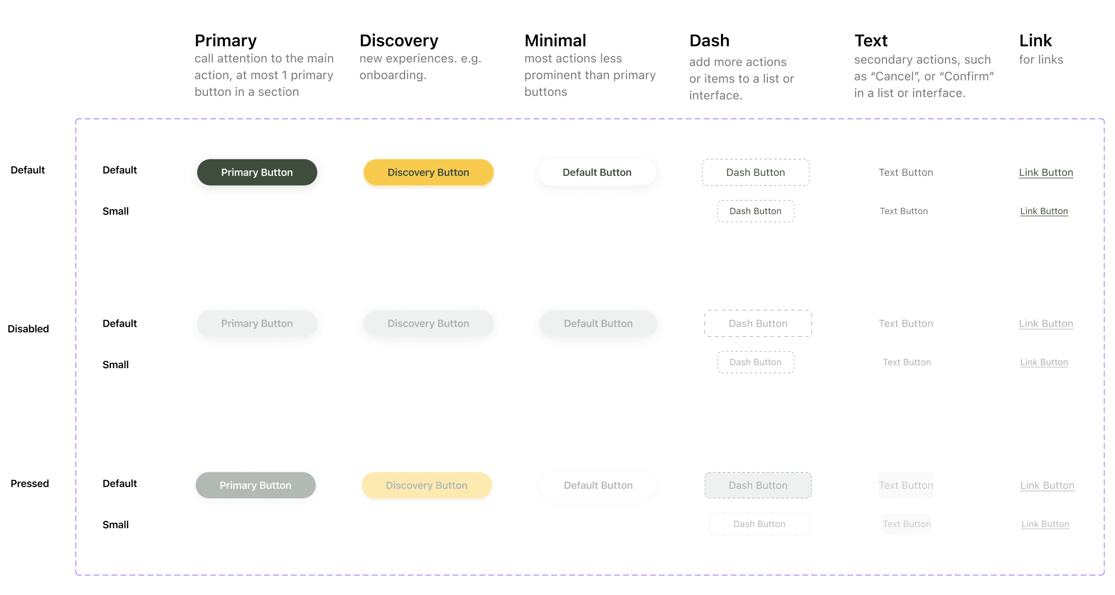 After looking at Atlassian, Palantir, and Tencent's design systems, I defined the buttons by their usage and created a new default, text, and link button.