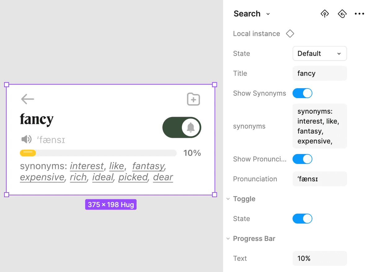 I created multiple variants, which allowed me to prototype different states directly.